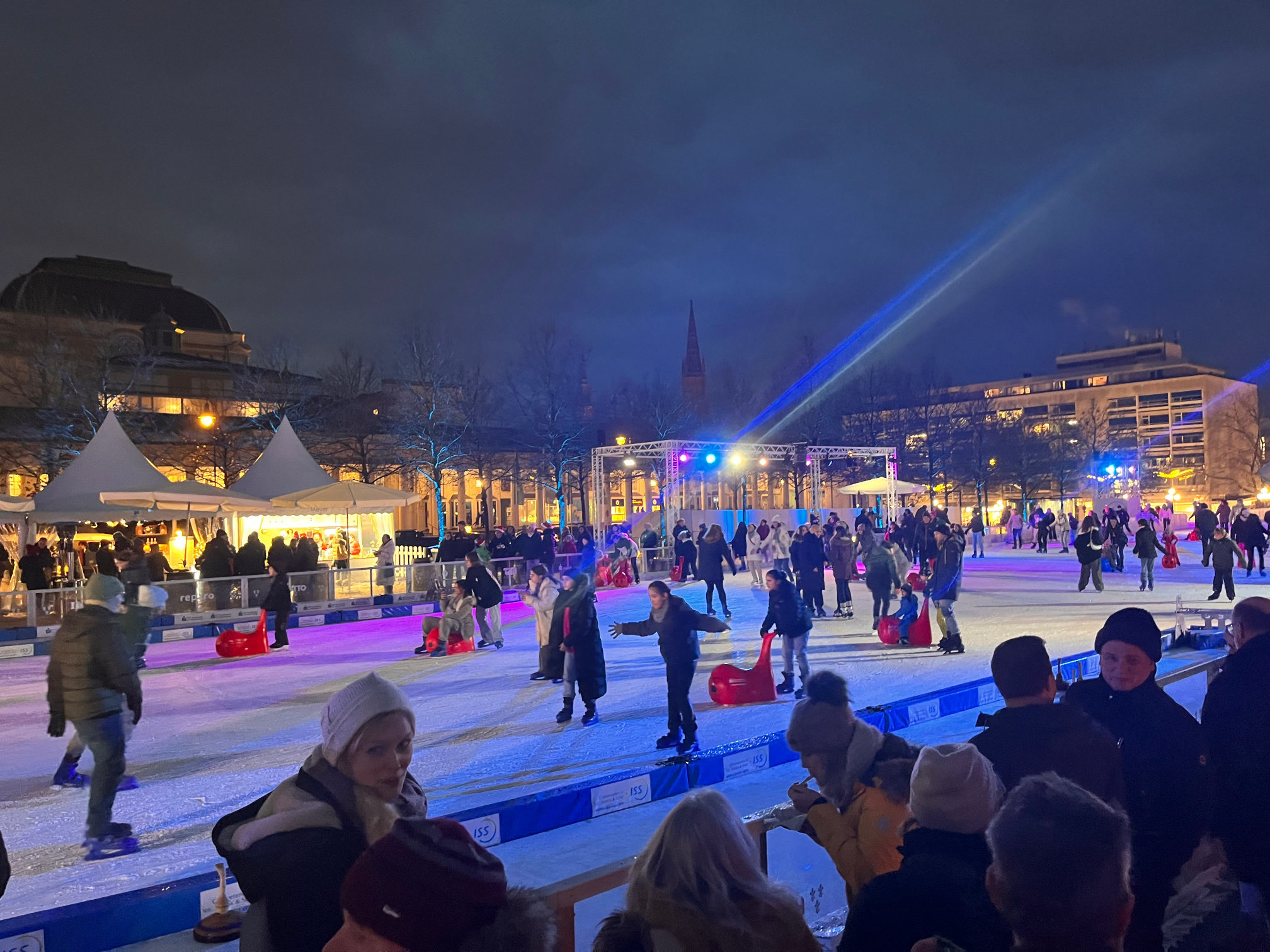 In der meist hektischen Vorweihnachtszeit besteht hier alljährlich Gelegenheit zum gemeinsamen Sport auf der Eisbahn, die in diesem Jahr endlich wieder am Kurhaus aufgebaut wird. Natürlich darf auch getratscht, Trackables ausgetauscht und der eine oder andere Glühwein (oder ähnliche Heißgetränke) getrunken werden!