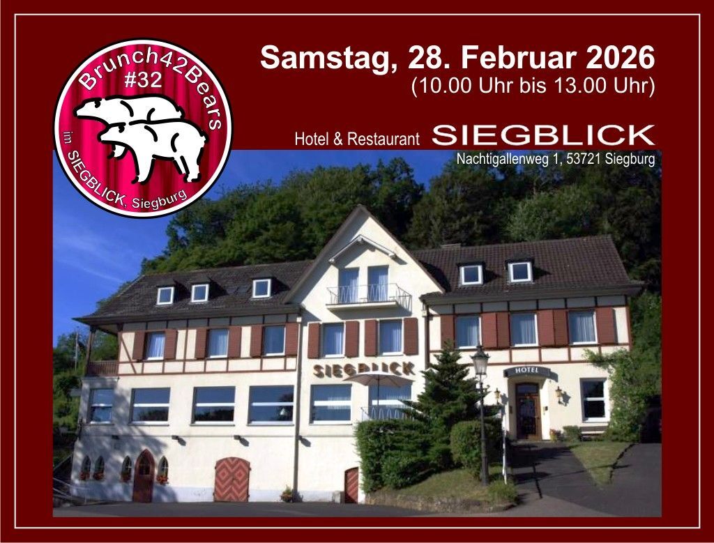 Am Samstag, 28. Februar 2026, setzen wir unsere Eventserie mit dem zweiunddreißigsten Bärenbrunch im Hotel & Restaurant „SIEGBLICK“ hoch über der "alten Sieg" fort. Ob Regen, Schnee, Eis oder Sonnenschein - wir machen es uns gemütlich!