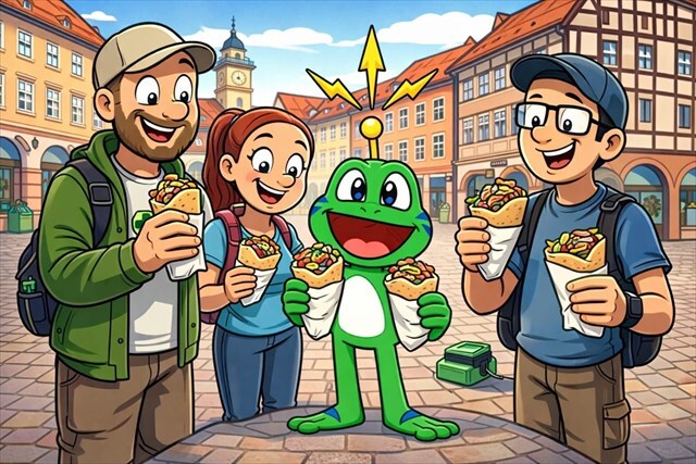 ab 17.00 Uhran den angegebenen Koordinaten mit uns zu treffen. Jeder der mag, kann sich im Markt Grill entsprechend dem Motto einen Döner oder etwas anderes zu Essen holen. So sind wir nicht auf langfristige Reservierungen angewiesen, was auch eine spontane Teilnahme möglich macht und wir können zwanglos miteinander plaudern.